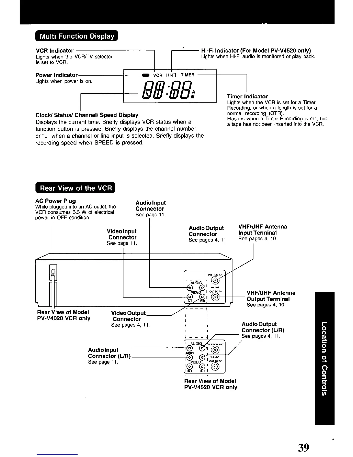 Panasonic Omnivision PV-V4520 - Multi Function Display Explained; Rear View of the VCR Connections