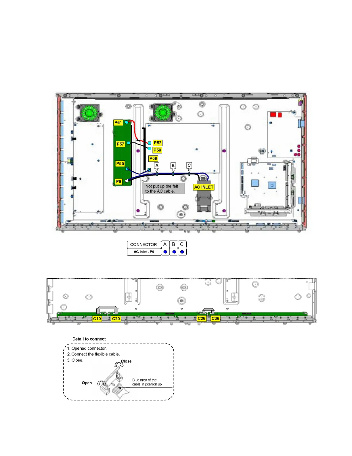 Please confirm that all flexible cables are assembled correctly.