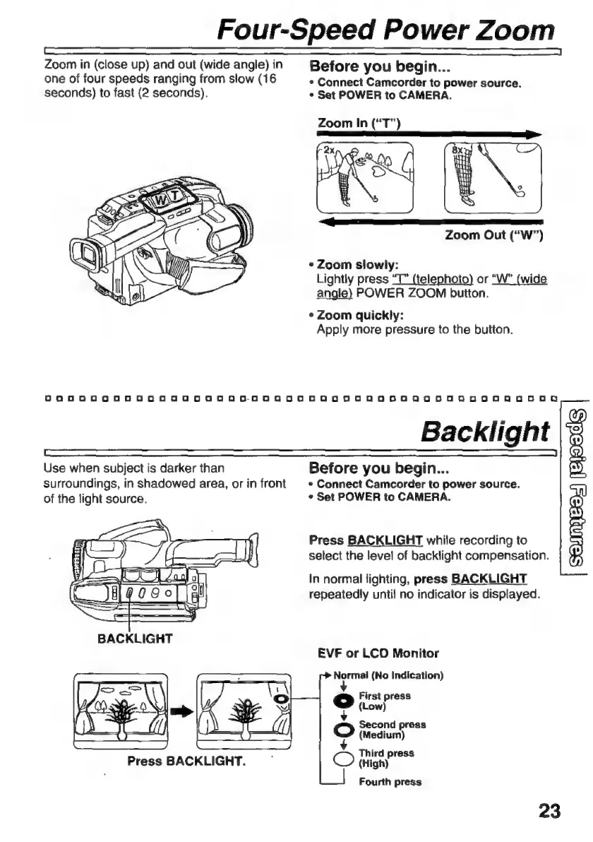 Panasonic Palmcoder PalmSight PV-L51 - Four-Speed Power ZOOM; Backlioh Toscanini Dera Snein Ninindss PA