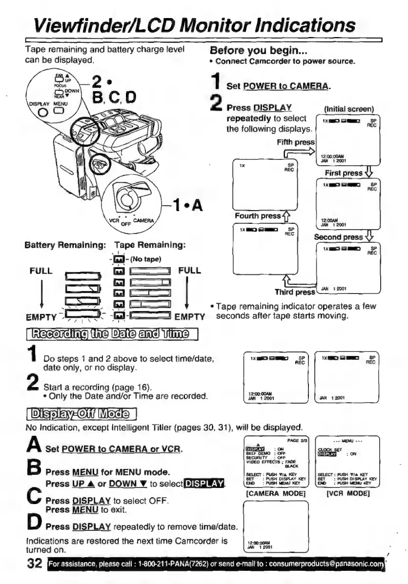 Panasonic Palmcoder PalmSight PV-L51 - Viewfinder;Lcd Monitor Indications Sss