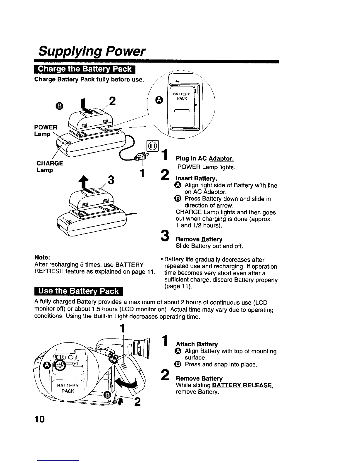 A fully charged Battery provides a maximum of about 2 hours of continuous use (LCD