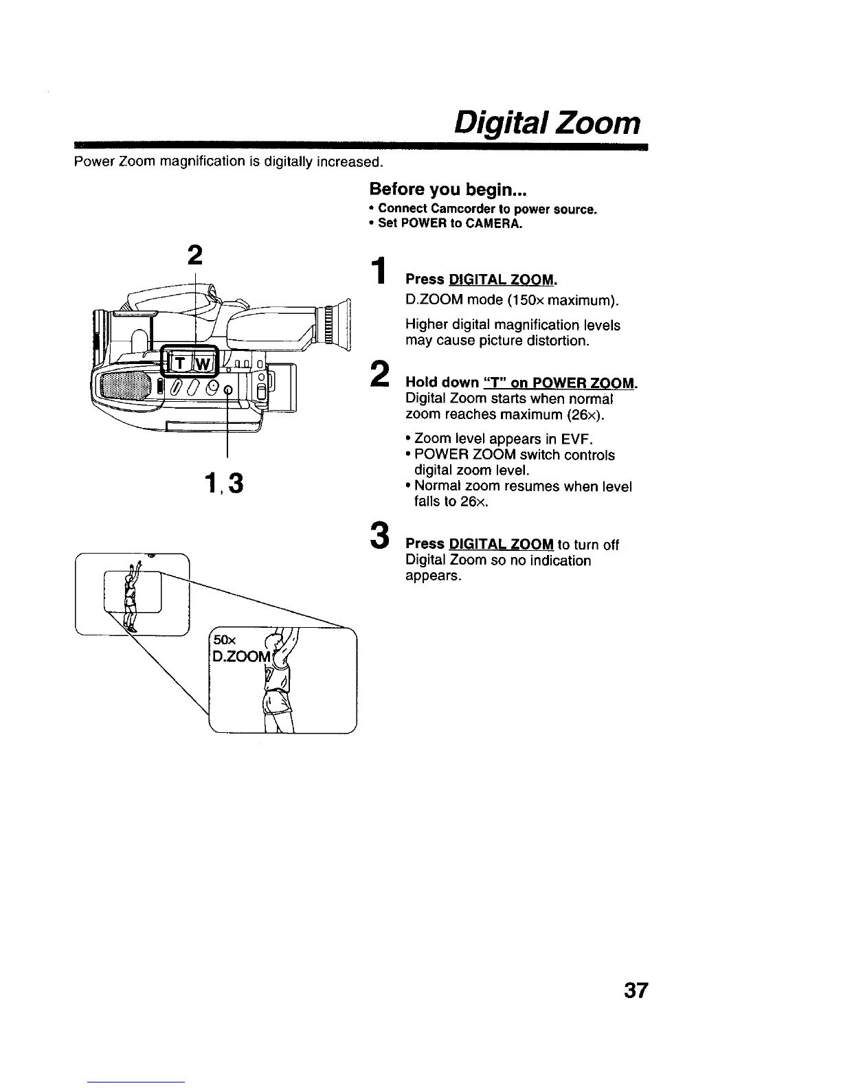 D.ZOOM mode (150x maximum).
