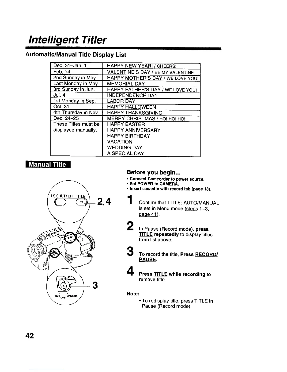 • To redisplay title, press TITLE in