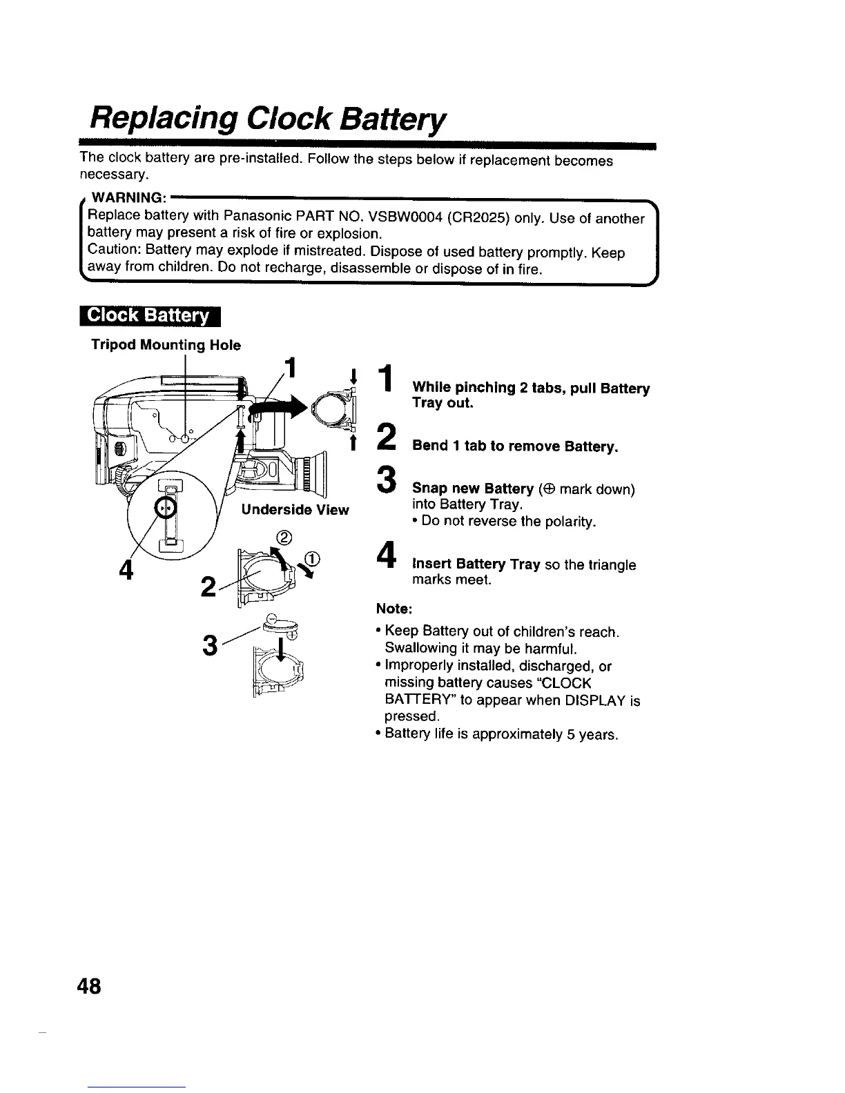 Replace battery with Panasonic PART NO. VSBW0004 (CR2025) only. Use of another _