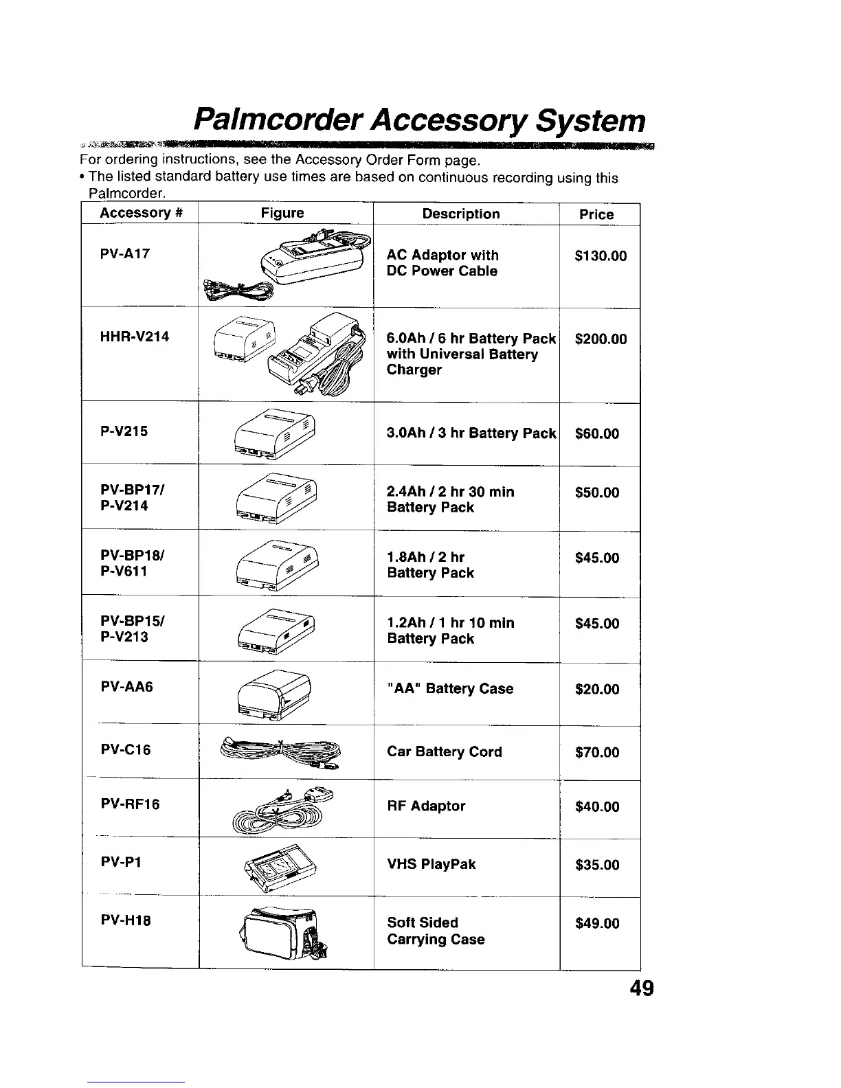 Panasonic Palmcoder Palmsight PV-L579 - Palmcorder Accessory System