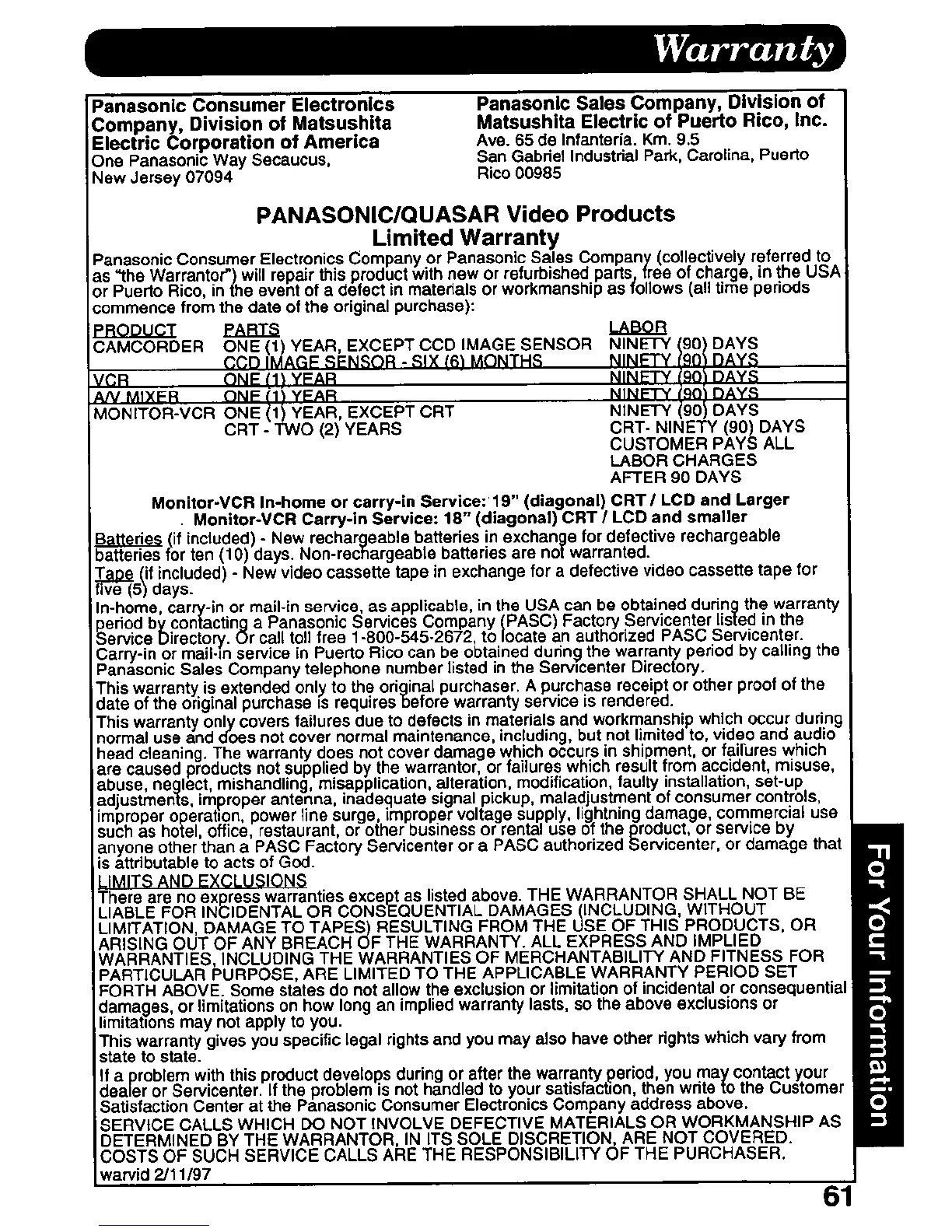 Panasonic Palmcorder PV-D607 - Page 61