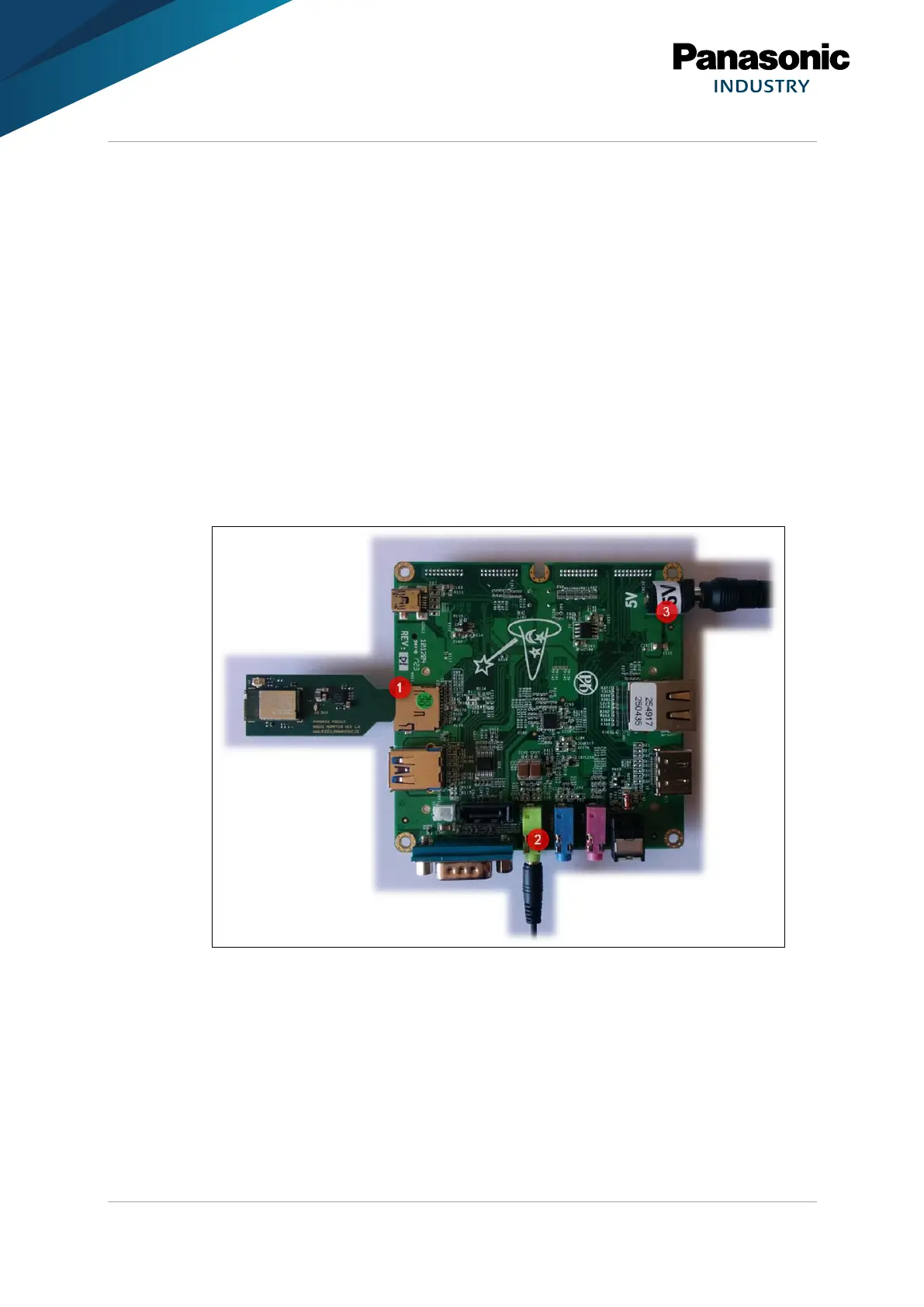 1. Insert the PAN9026-MSD into the µSD card slot of the Baseboard (1).