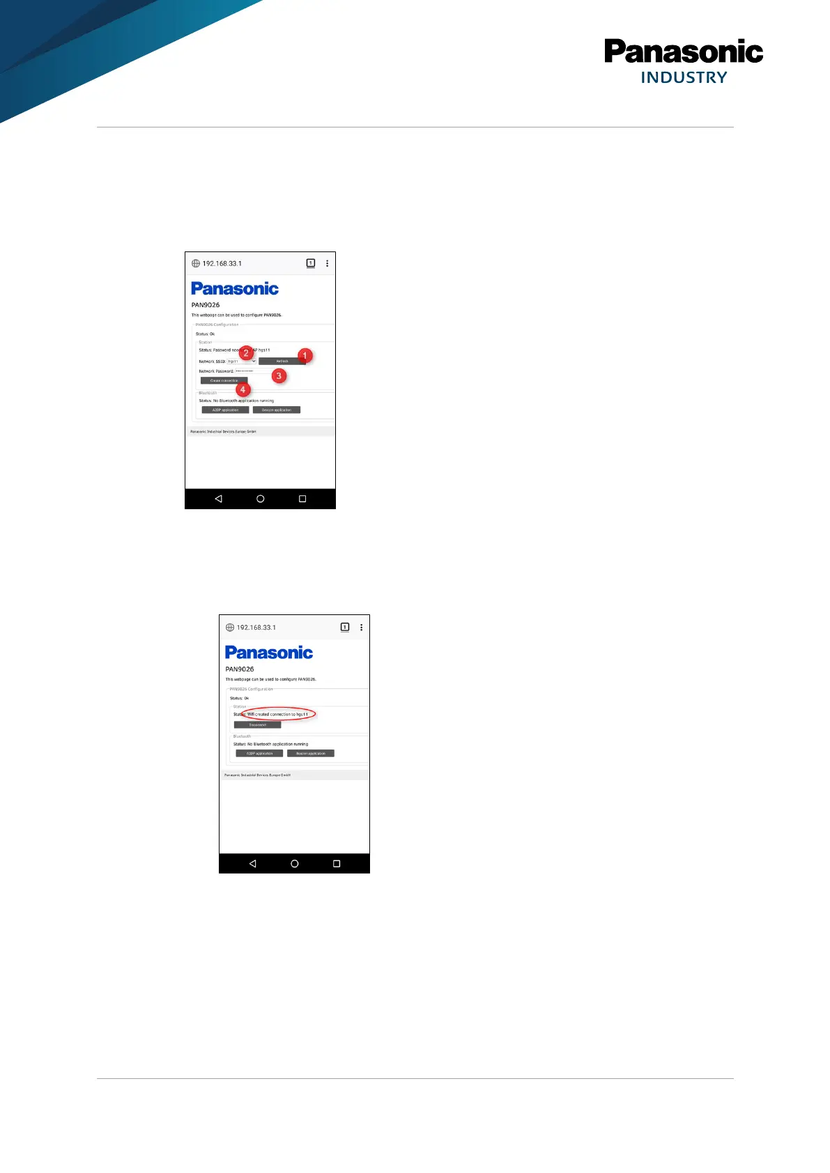 ➔ The PAN9026 will connect to it. This takes approximately a couple of seconds.