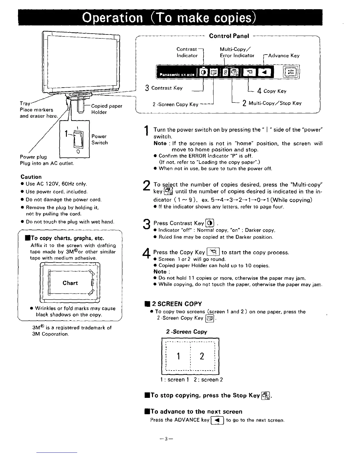 Panasonic Panaboard KX-B430 - Operation; Control Panel Overview; Making Copies; Advanced Copying Features