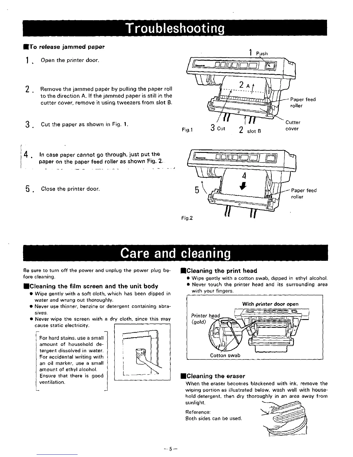 Panasonic Panaboard KX-B430 - Care and Cleaning; Releasing Jammed Paper; Cleaning Procedures