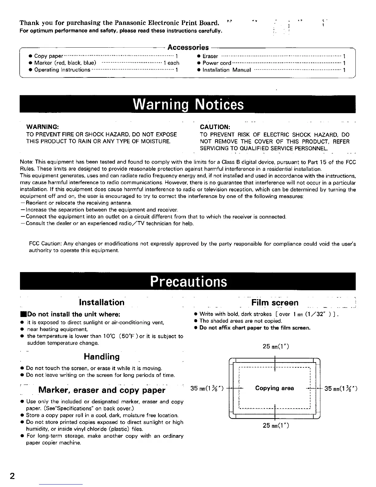 Panasonic Panaboard KX-B730 - Warning Notices and Precautions; General Safety Warnings