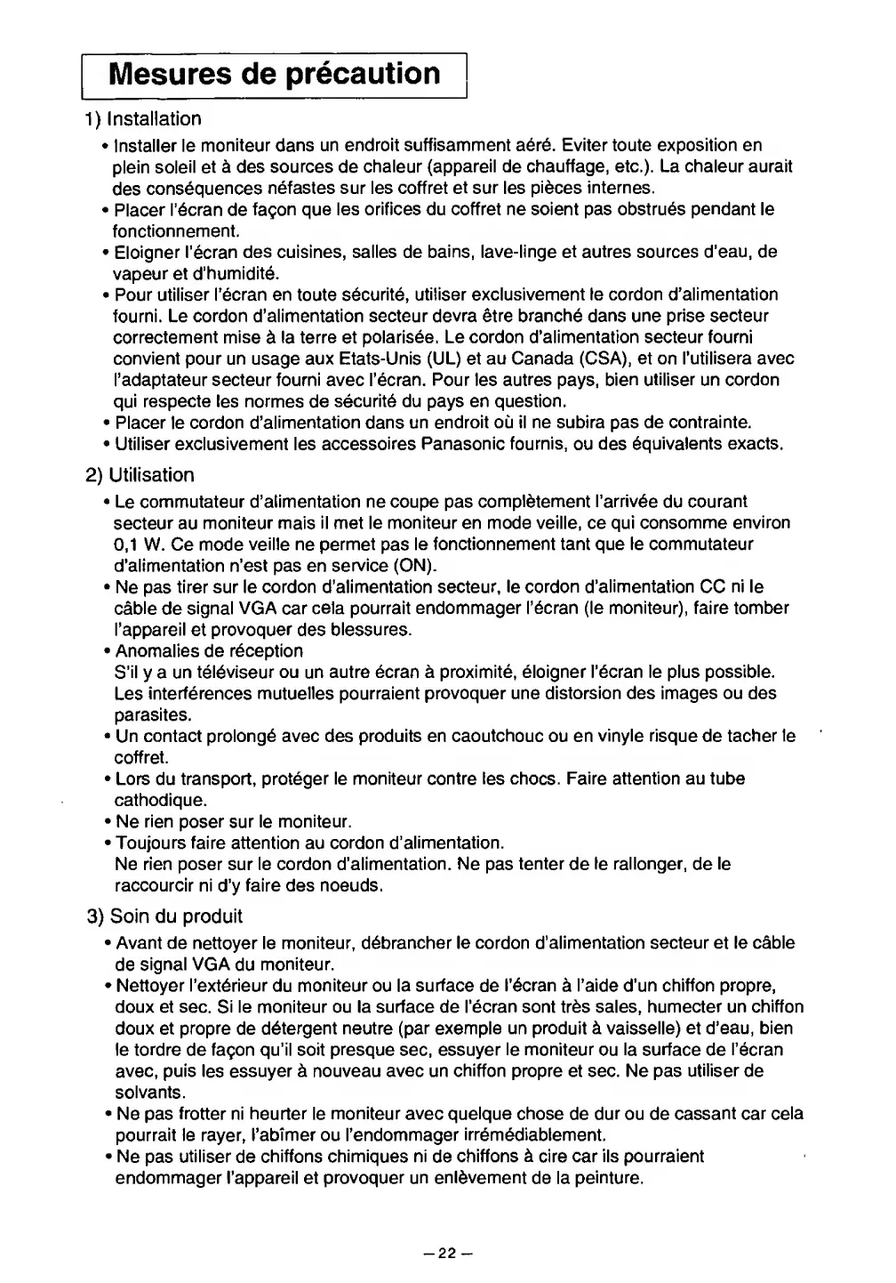 proteger le moniteur contre les chocs.