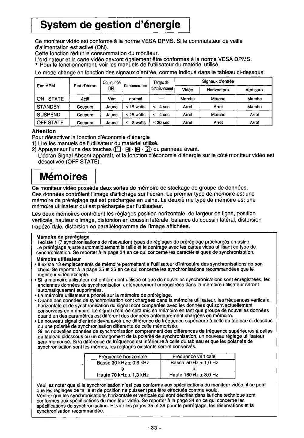 conforme aux specifications du moniteur