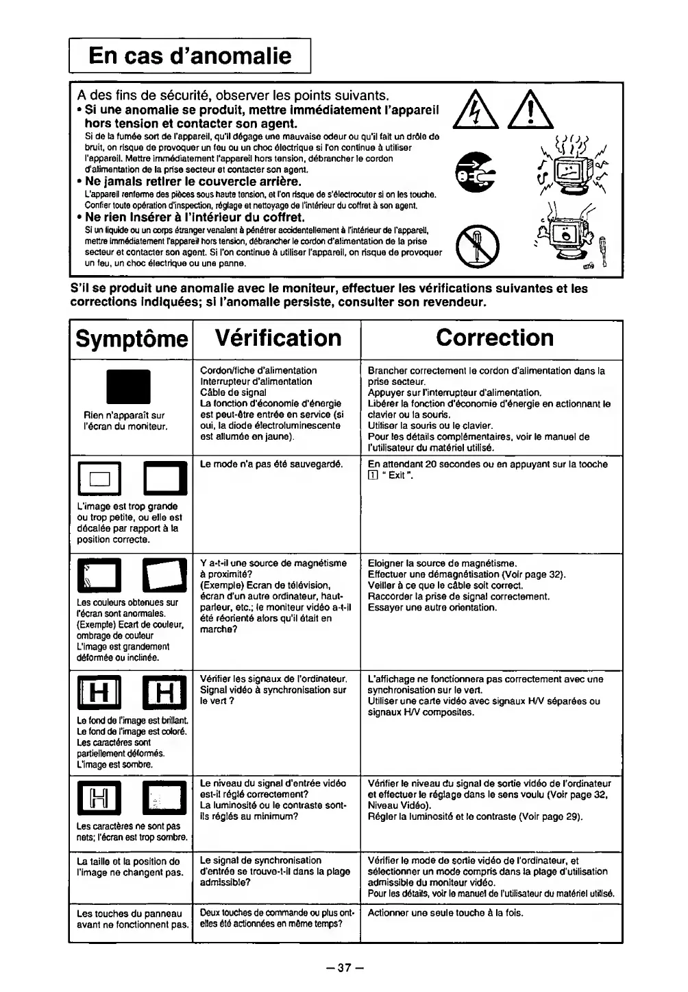 anomalie avec le moniteur, effectuer les verifications suivantes