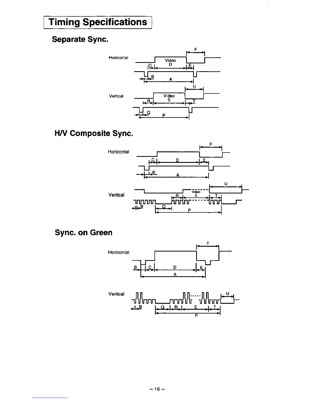 Panasonic PANASYNC P70 - Timing Specifications; Separate Sync.; H;V Composite Sync.; Sync. on Green