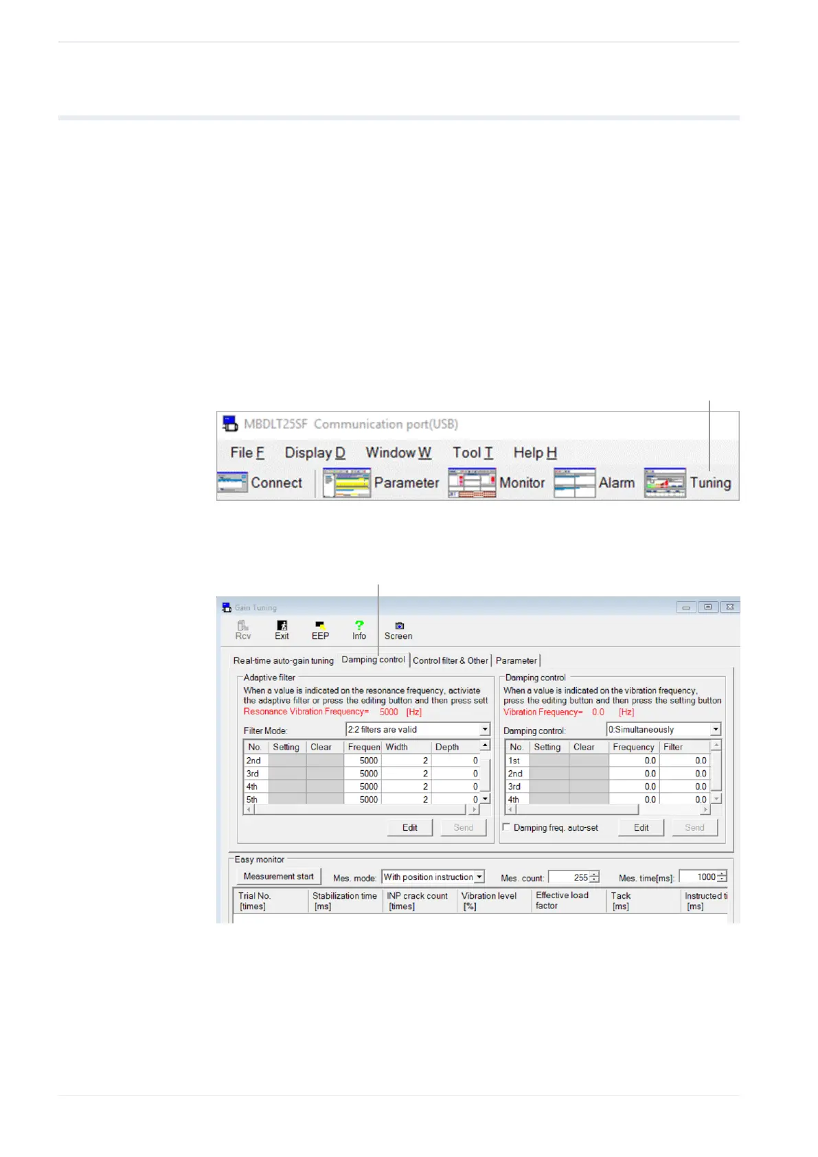 5. While the motor is performing a repetitive, constant movement, select the “Tuning”