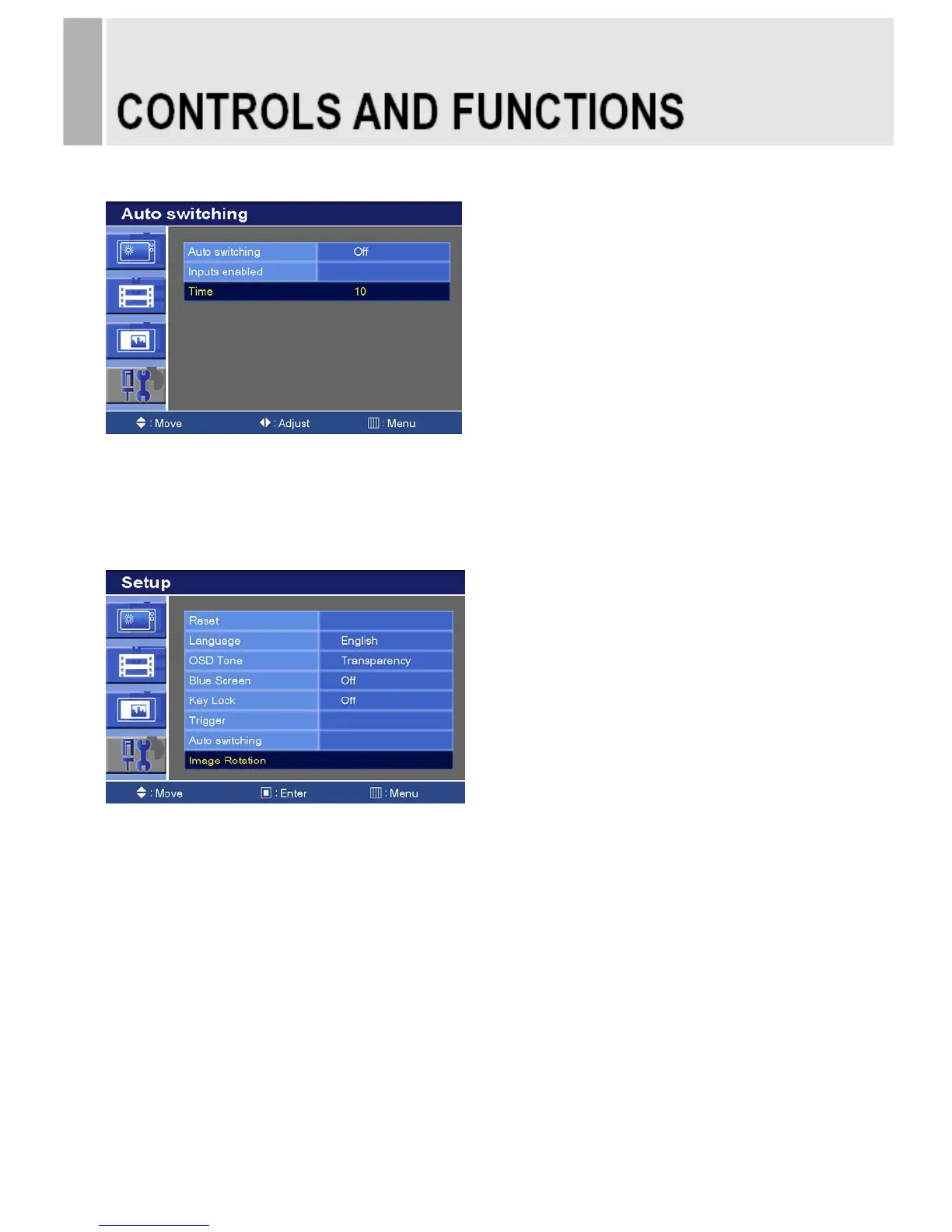1) Press the up(▲) / down(▼) button to select the Image Rotation.