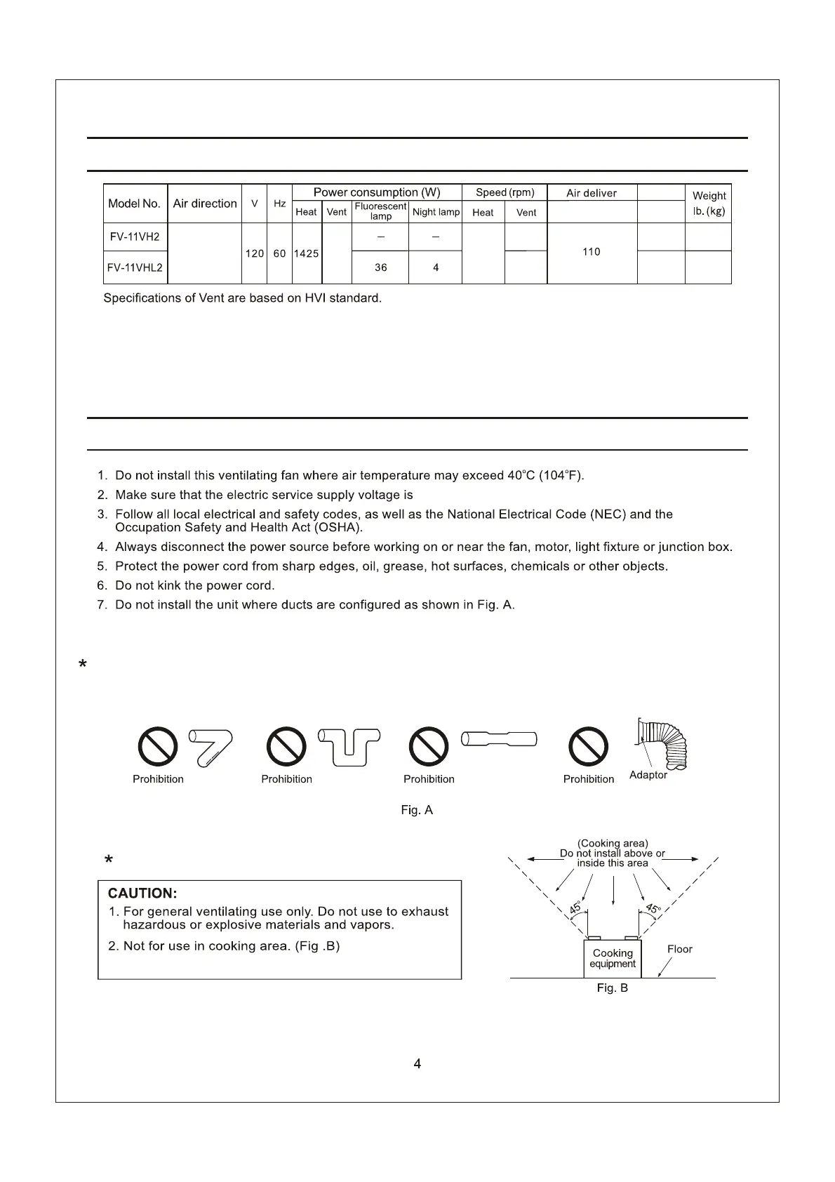 9. DO NOT INSTALL THIS UNIT OVER A BATHTUB OR SHOWER ENCLOSURE.