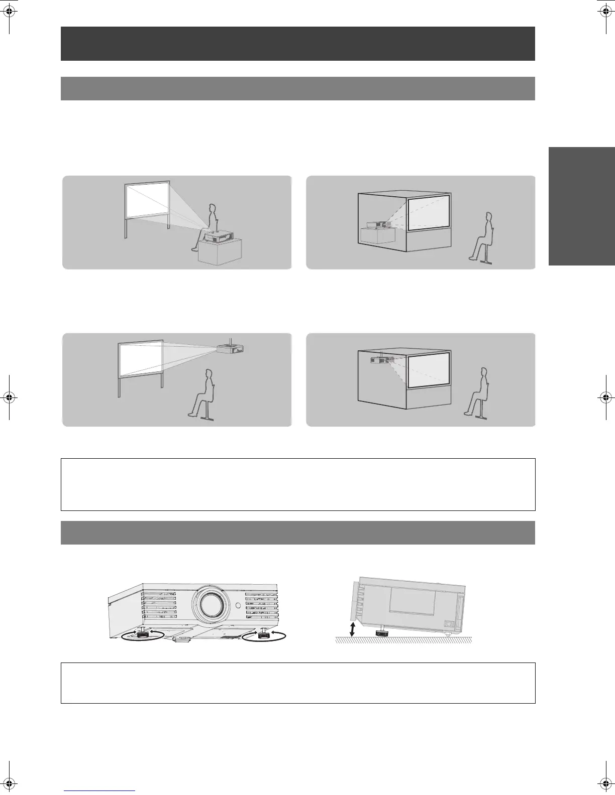 You can use the projector with any of the following 4 projection methods. To set the desired method in the projector,