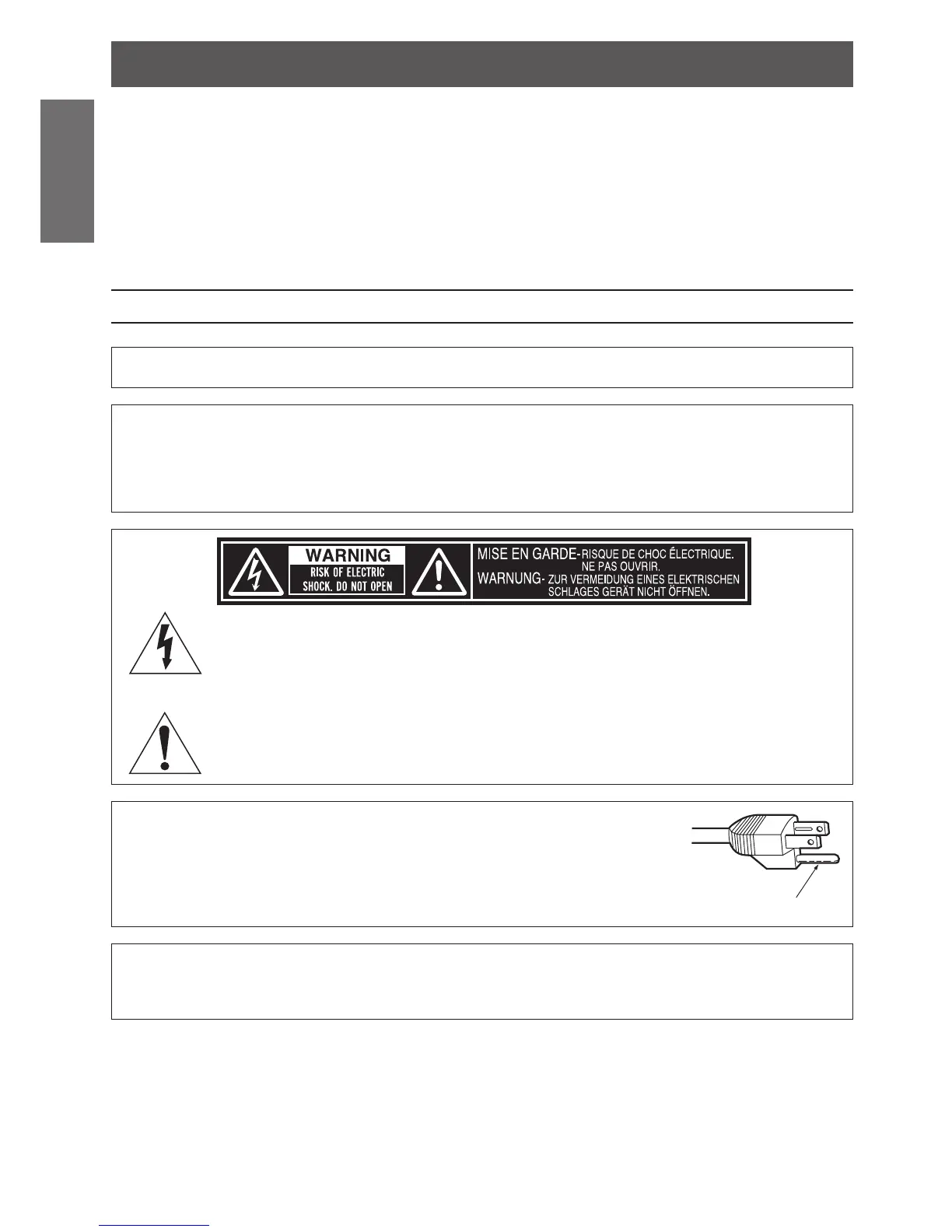 plug. Do not remove the grounding pin on the power plug. This plug