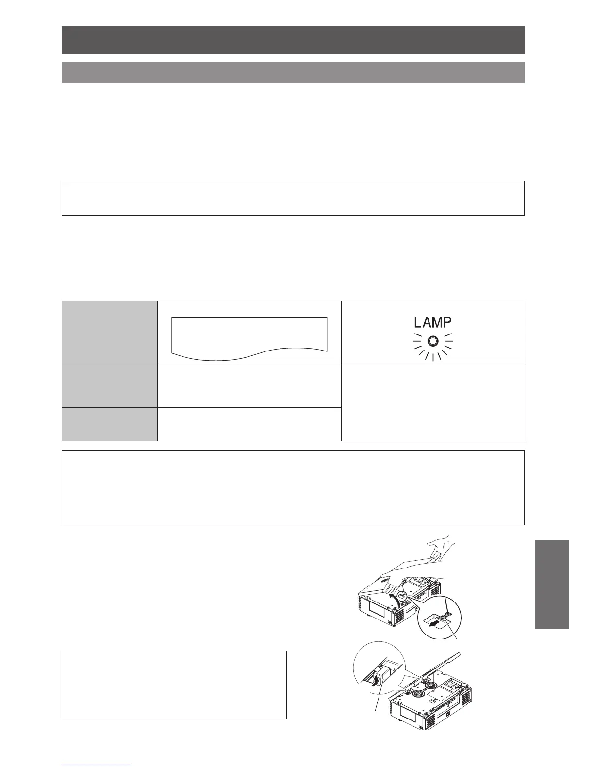 The lamp unit is consumable and the brightness decreases by duration of usage. The LAMP indicator will