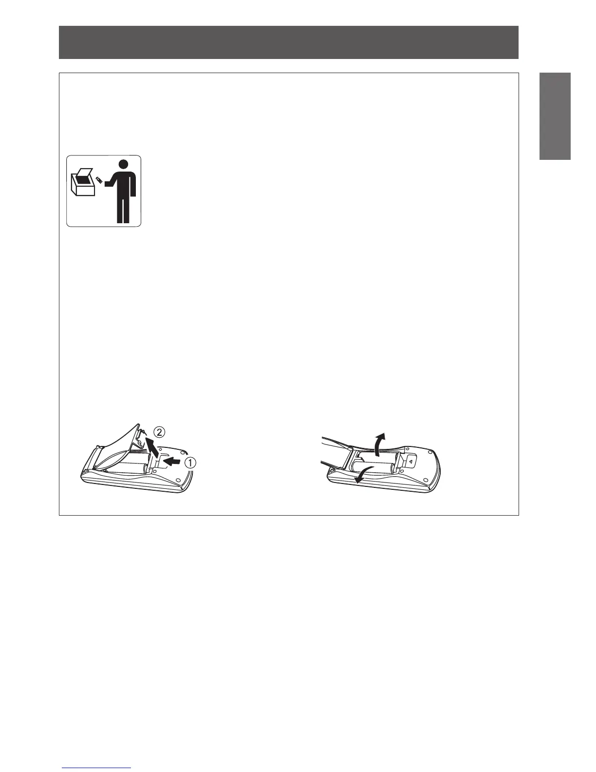 1. Pressione a guia e levante a tampa. 2. Remova as baterias.