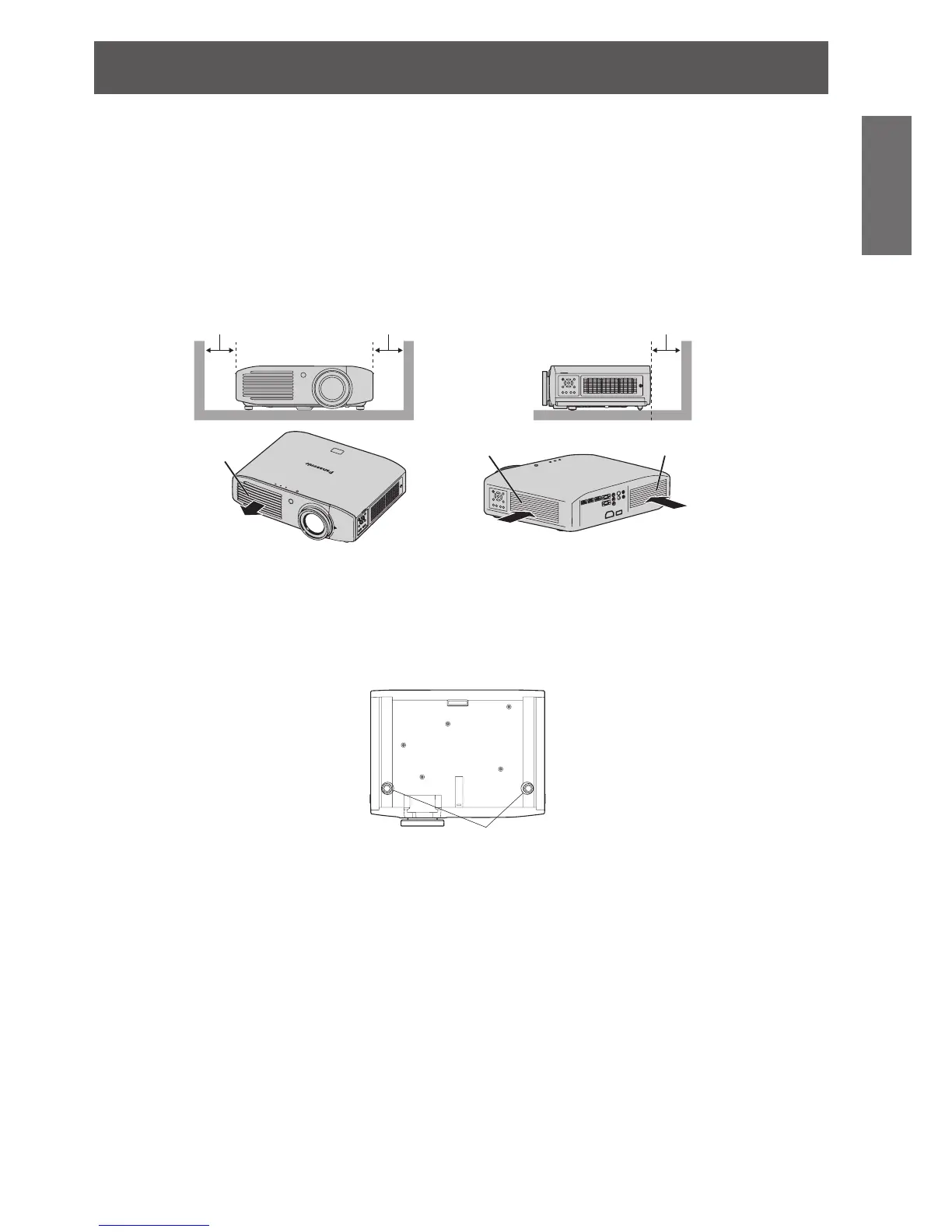 Emitted heat accumulates if ventilation is insufcient. This may cause the protection circuit of the projector to operate.