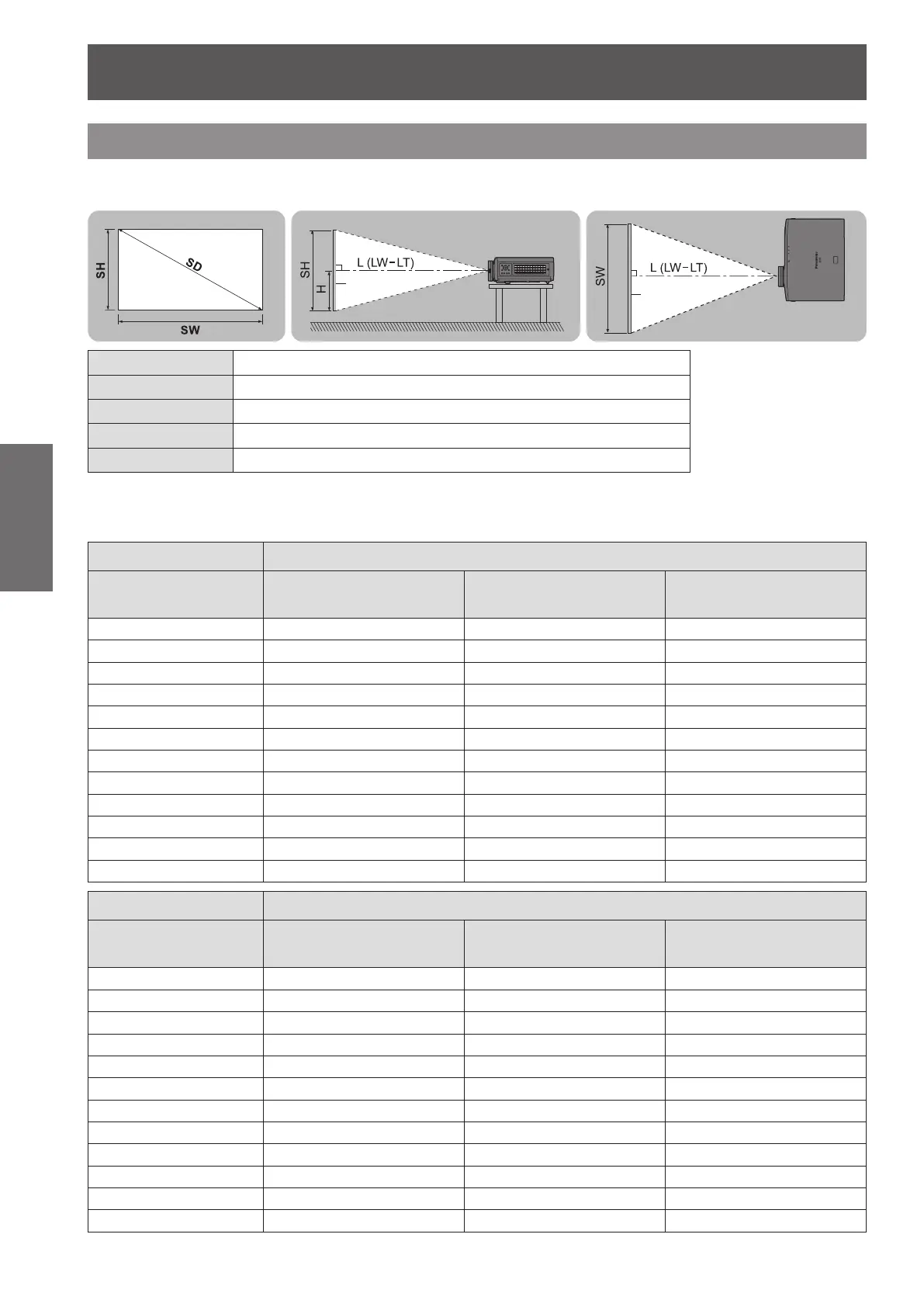 Install the projector with reference to the gure below and the projection distance. You can adjust the display size