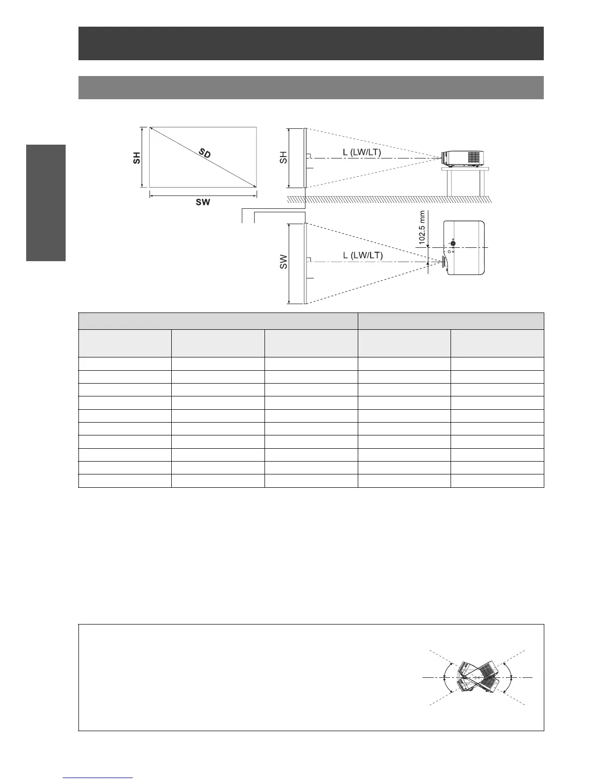 the projector body approximately ± 30 degrees vertically. Overtilting may