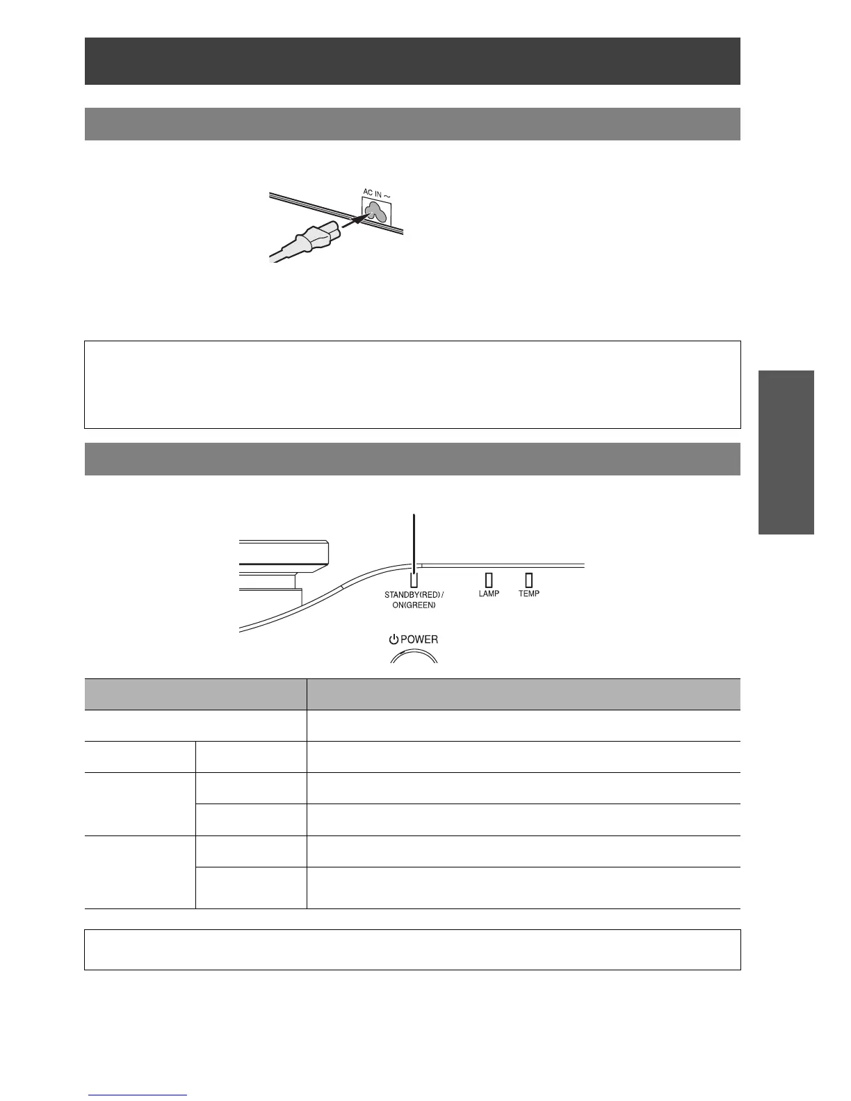 RED Lit The MAIN POWER is switched on and the projector is standby.