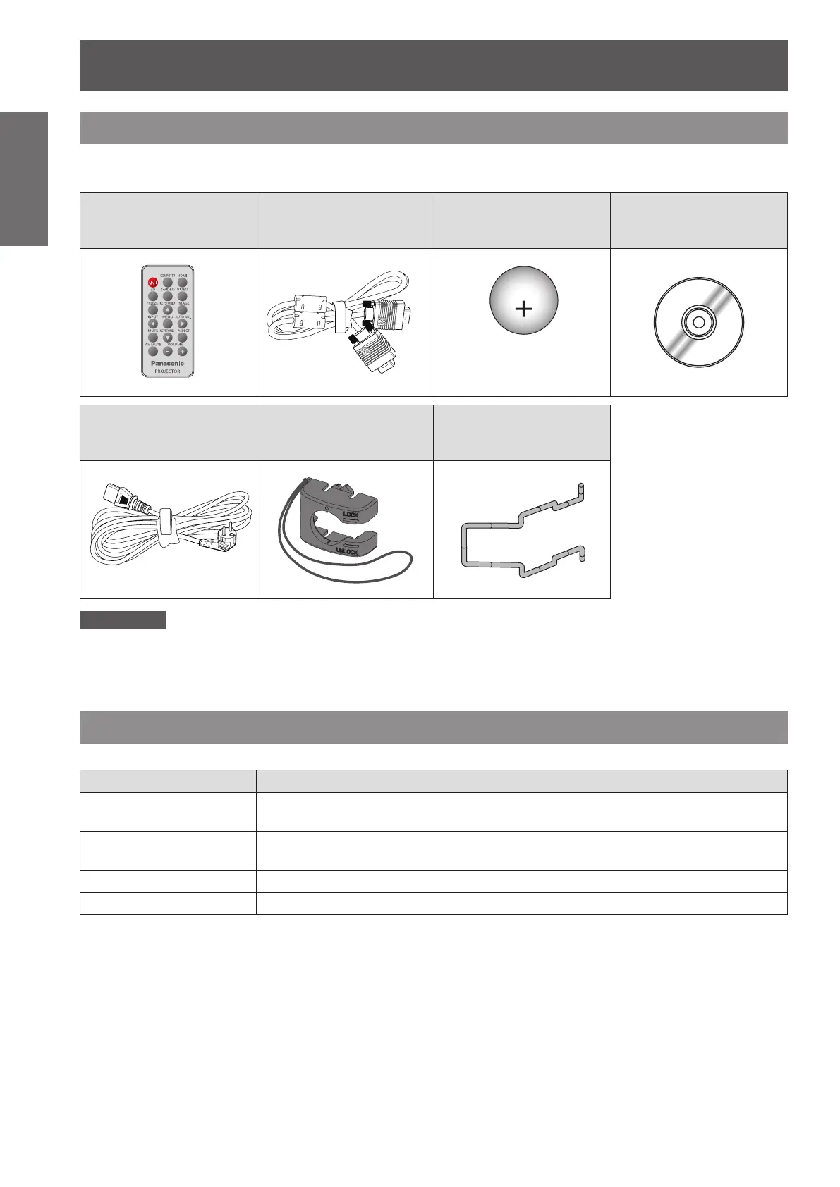 Make sure the following accessories are provided with your projector. Numbers in the brackets ( ) show the