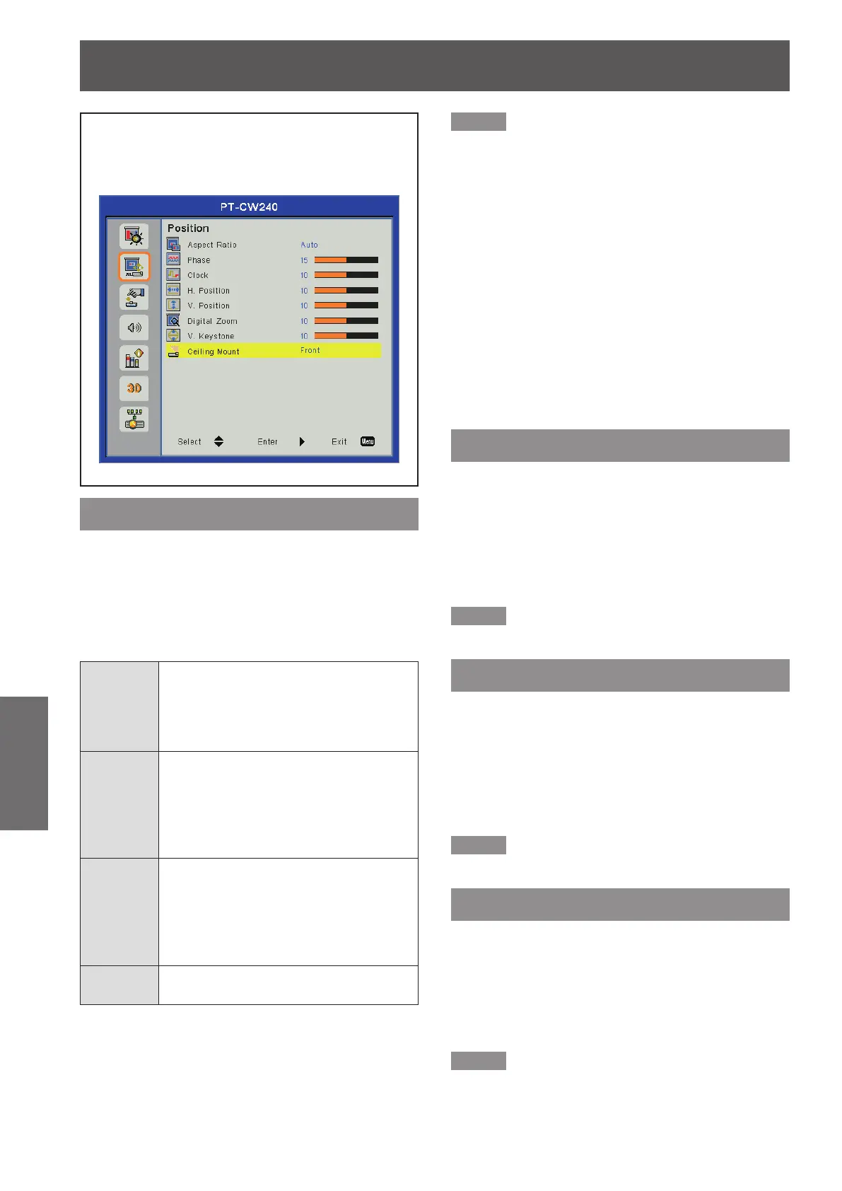 During Computer input signal, [Phase] can be adjusted.