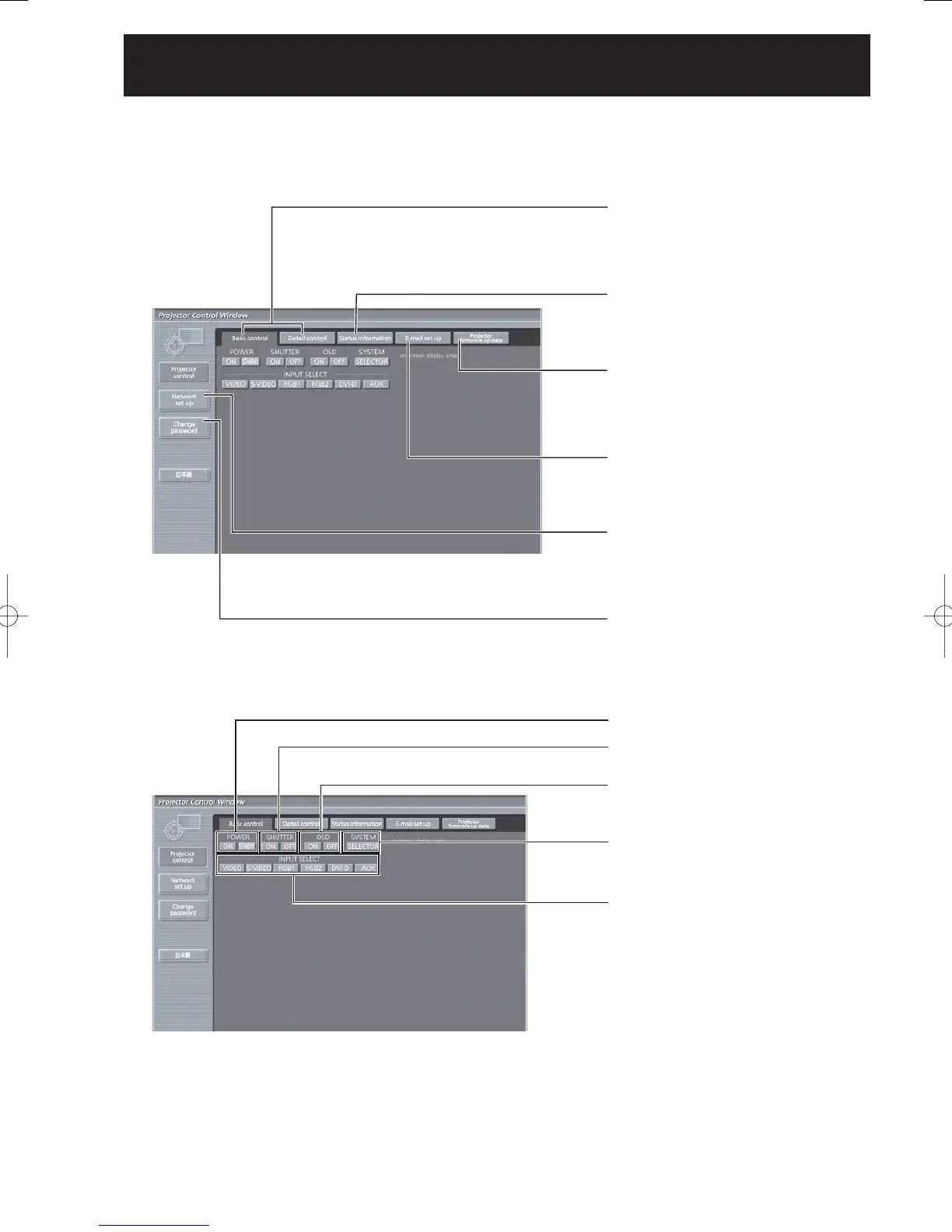 To move from another page, click [Projector control], then [Basic control].
