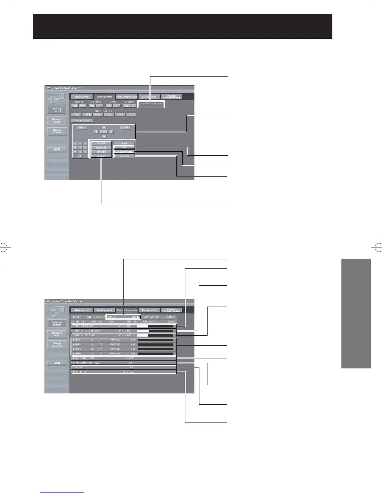 Click [Projector control], then [Detail control] to display the Detail control page.
