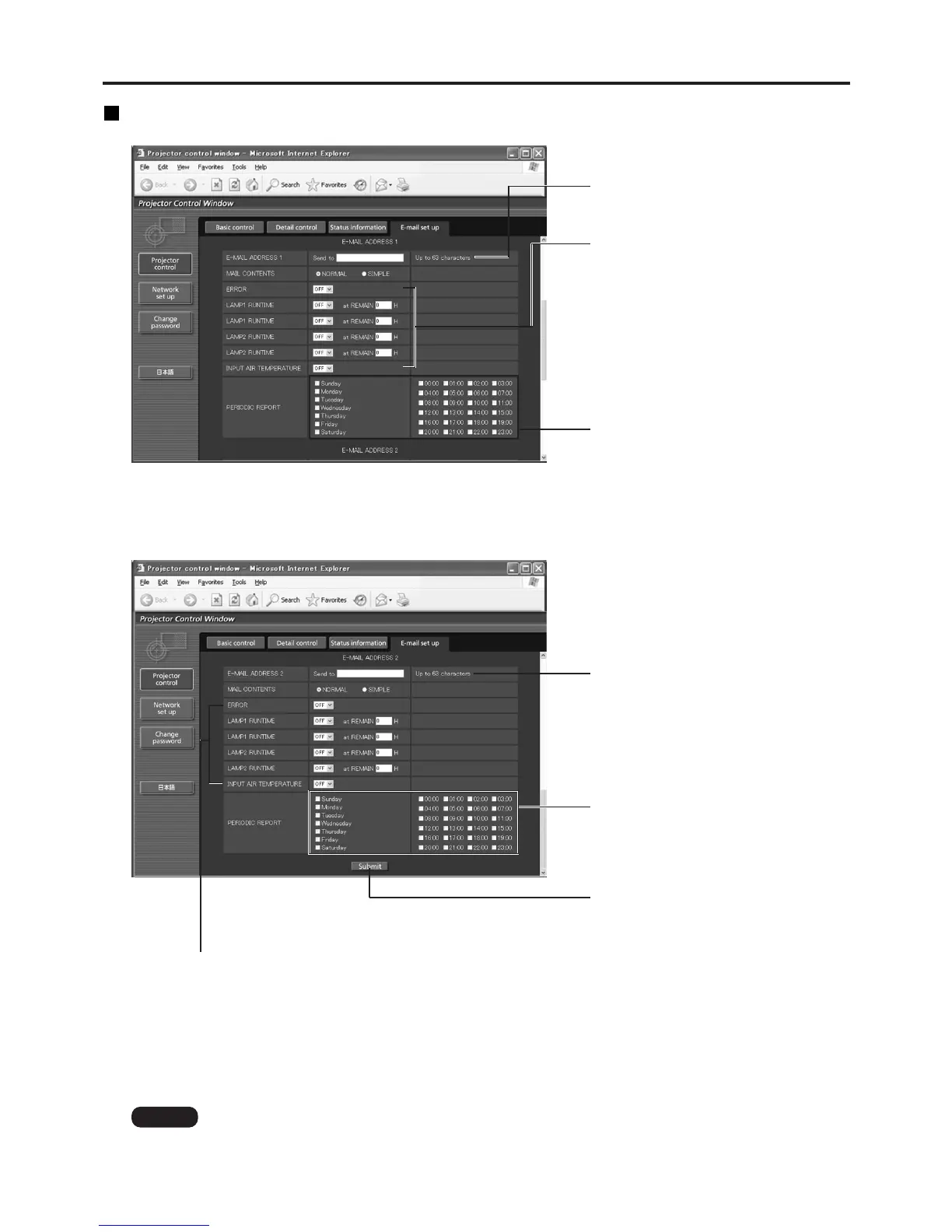 • Only alphanumeric characters, “.”, “_”, “-”, or “@” are available to set an E-mail address.Note