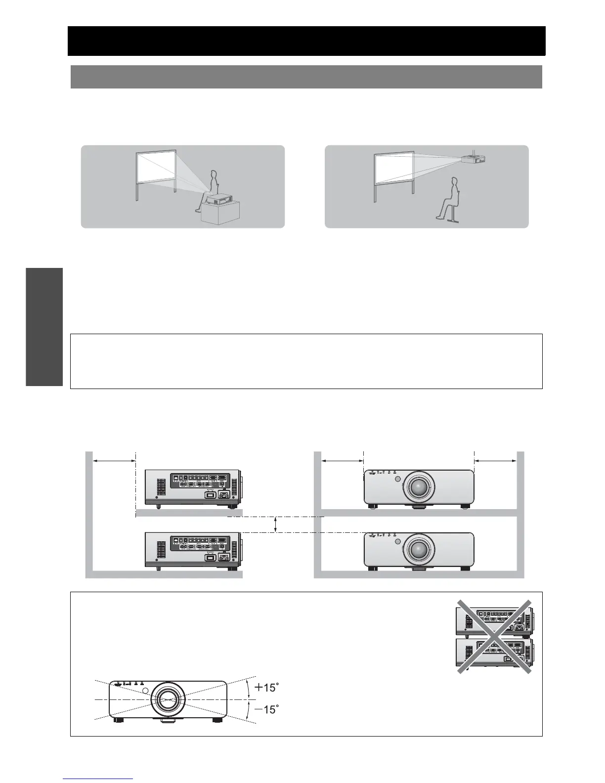 • Do not stack the projectors without using frame or shelf.