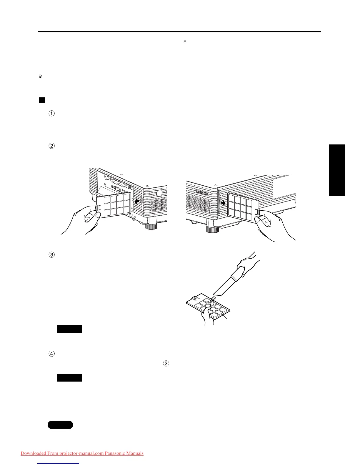 Clean the air filter section once every 100 hours or so as a guideline depending on the location of projector