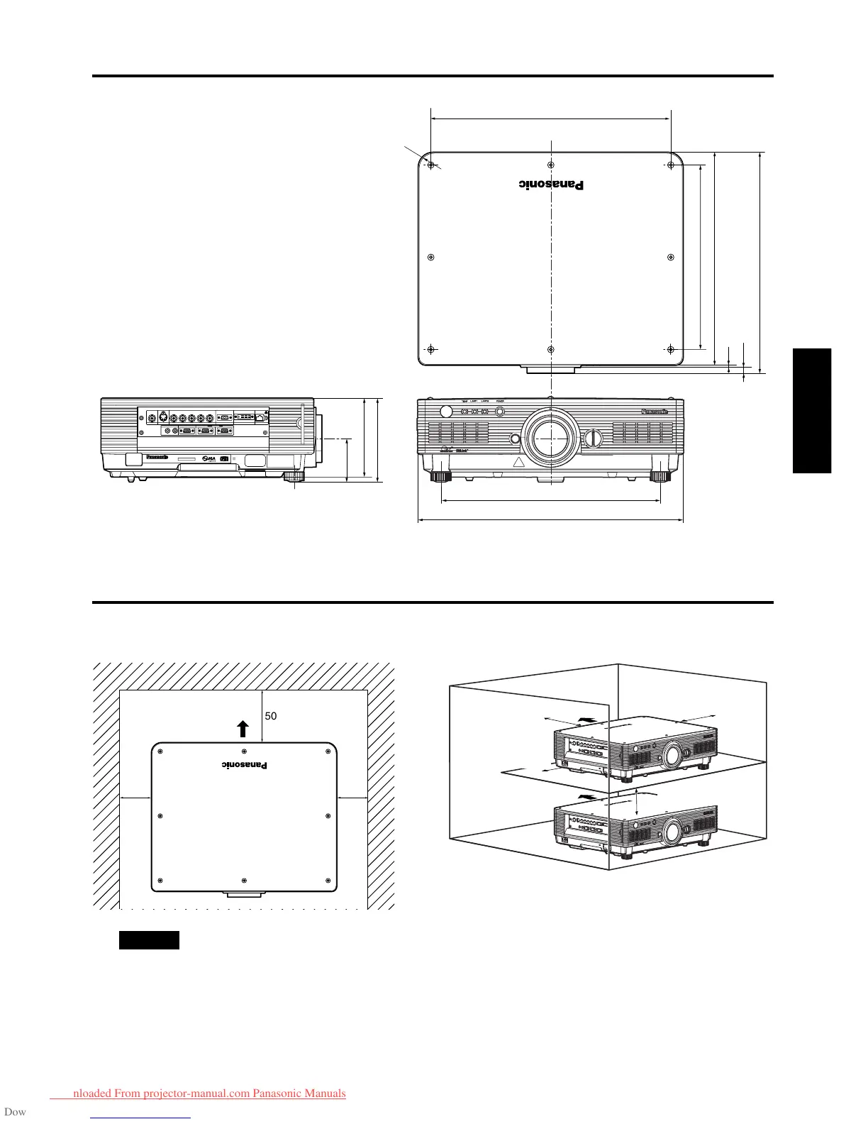 • Leave a clearance of at least 50 cm so that the ventilation opening on the rear panel will not be