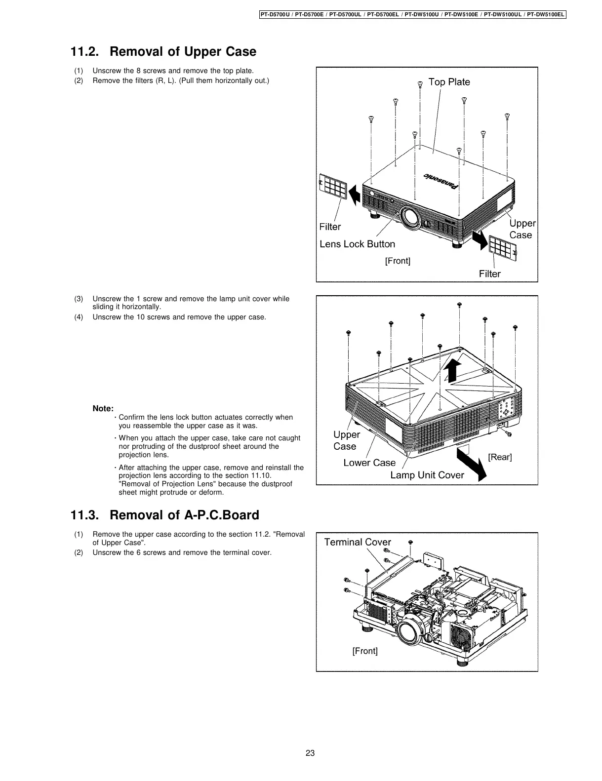 "Removal of Projection Lens" because the dustproof