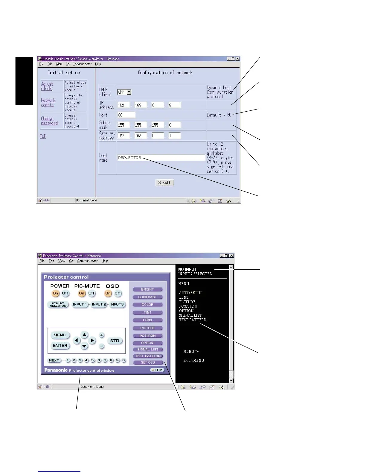 Projector control page