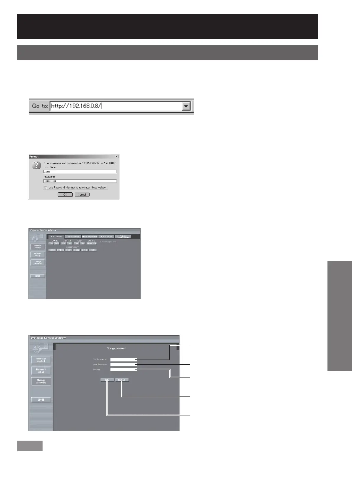 At the time of shipment from the factory, the “User Name” is set to “user1” and the “Password” is set to
