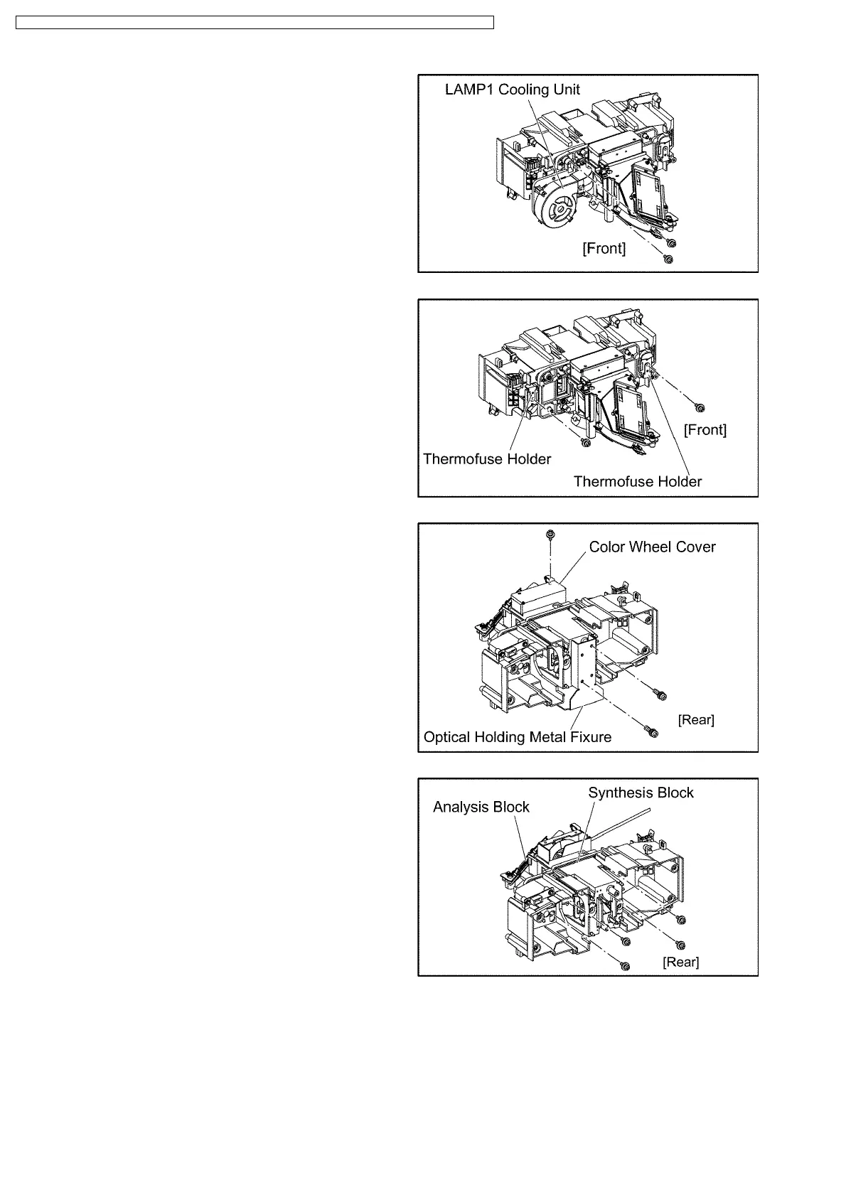 (7) Unscrew the 2 screws and remove the lamp 1 cooling unit.