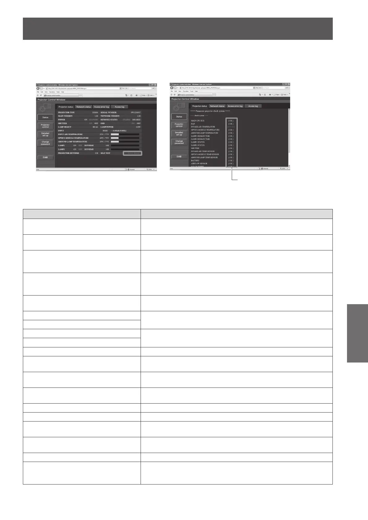 When [Error (Detail)] is displayed on the [Projector status] screen, click it to display the error details.