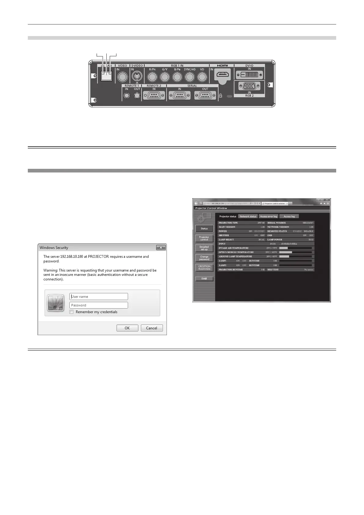 Do not perform setting or control simultaneously by starting up multiple Web browsers. Do not set or control the projector from multiple