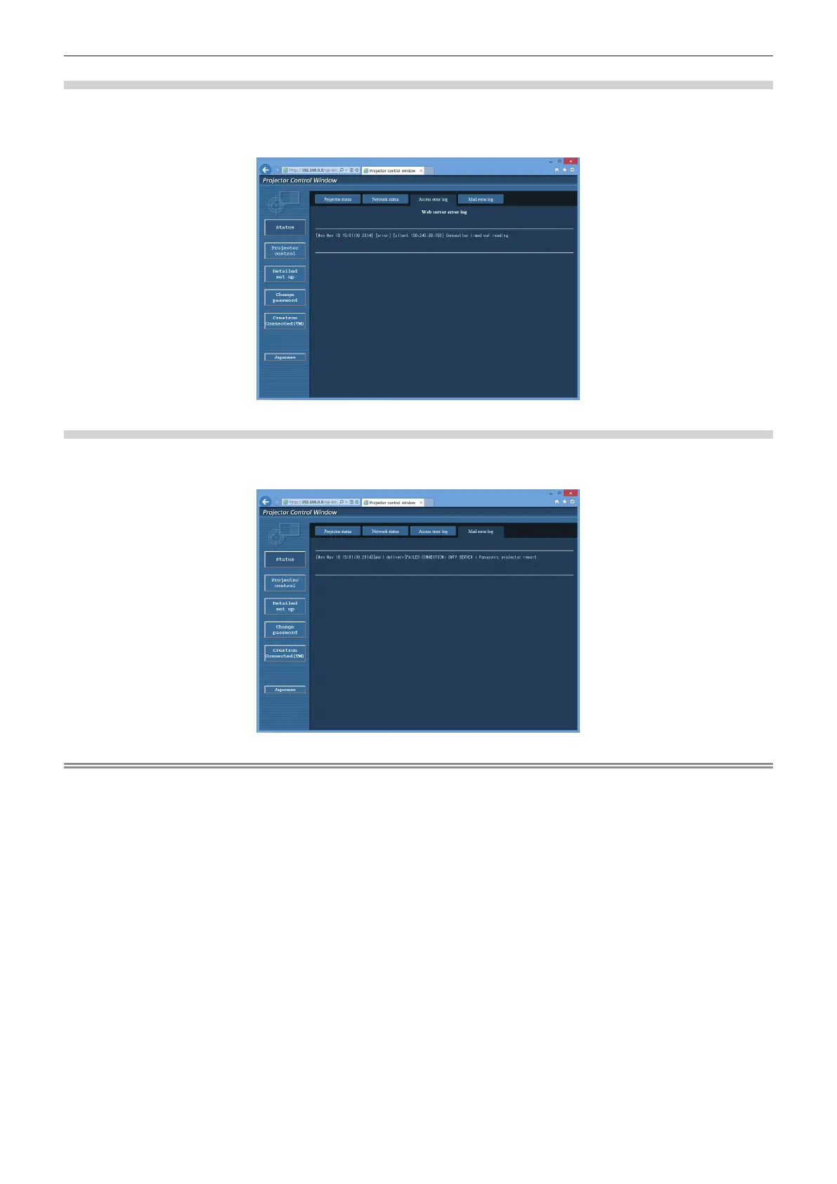 f [Access error log] and [Mail error log] display the recent few thousand accesses/requests. All information may not be displayed when many