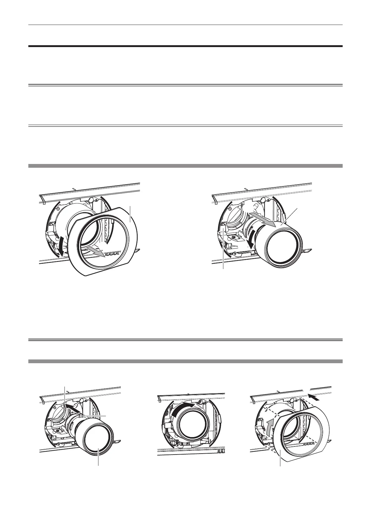 f In case of the ultra short focus zoom lens (Model No.: ET-DLE080, ET-DLE085), attachment/removal procedures of the lens mount cover