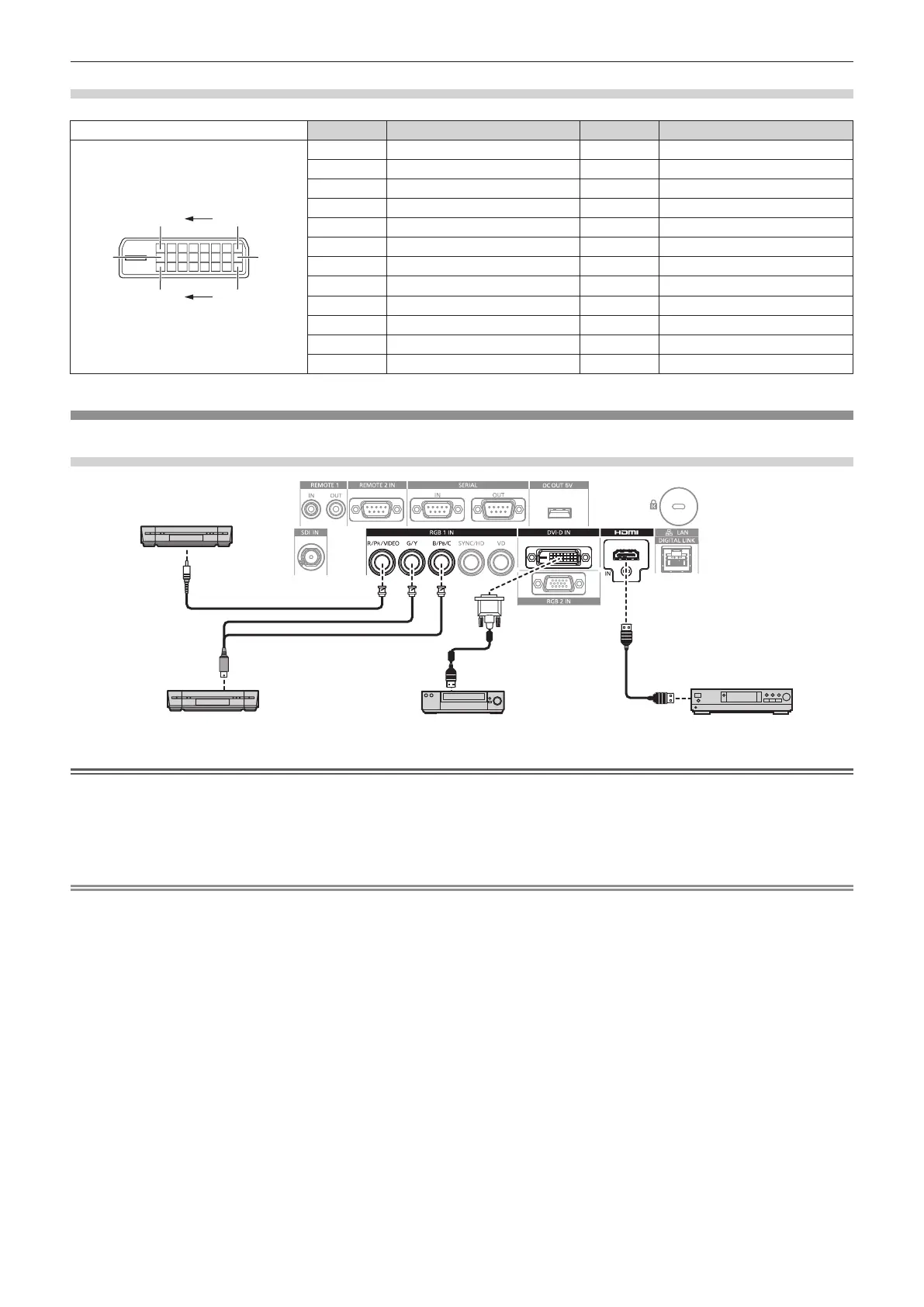 f The <DVI-D IN> terminal can be connected to HDMI- or DVI-D-compliant devices. However, images may not appear or may not be