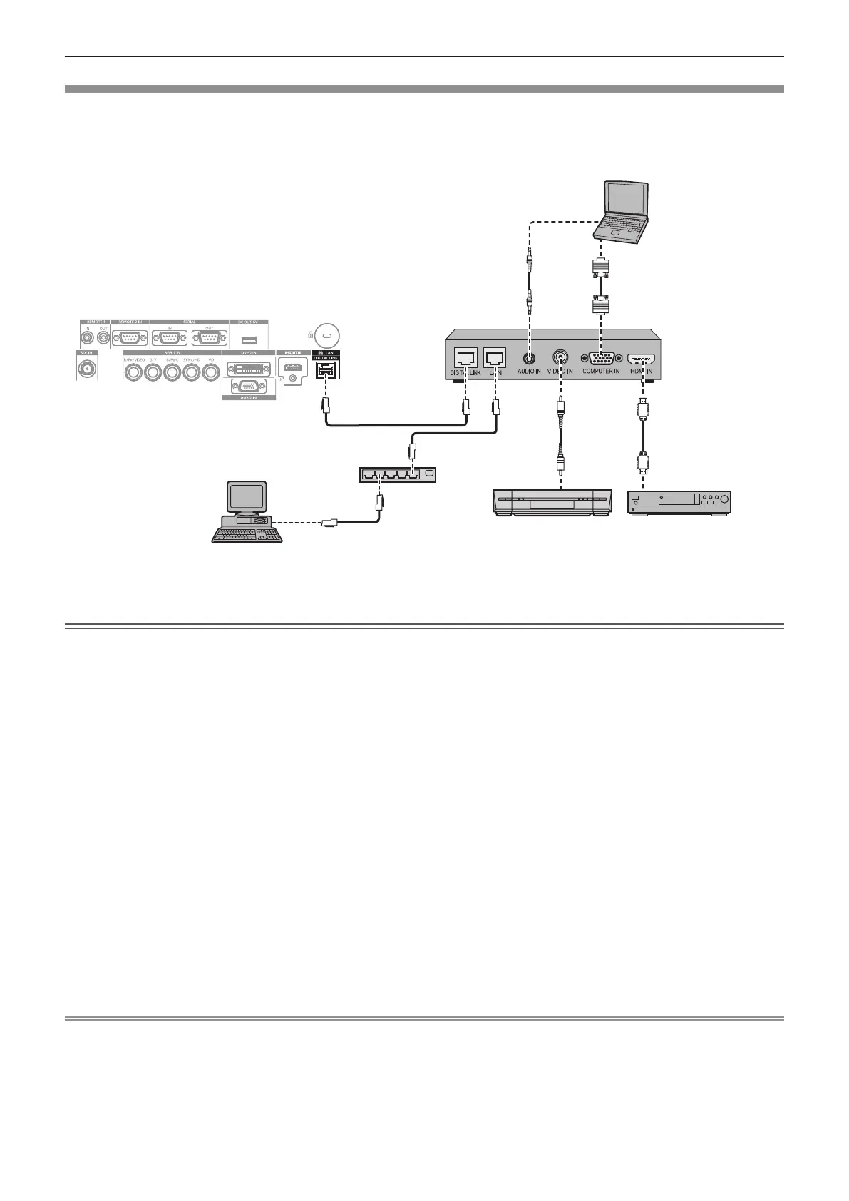 f When connecting to the projector using a twisted-pair-cable transmitter (receiver) of other manufacturer, do not place another twisted-pair-