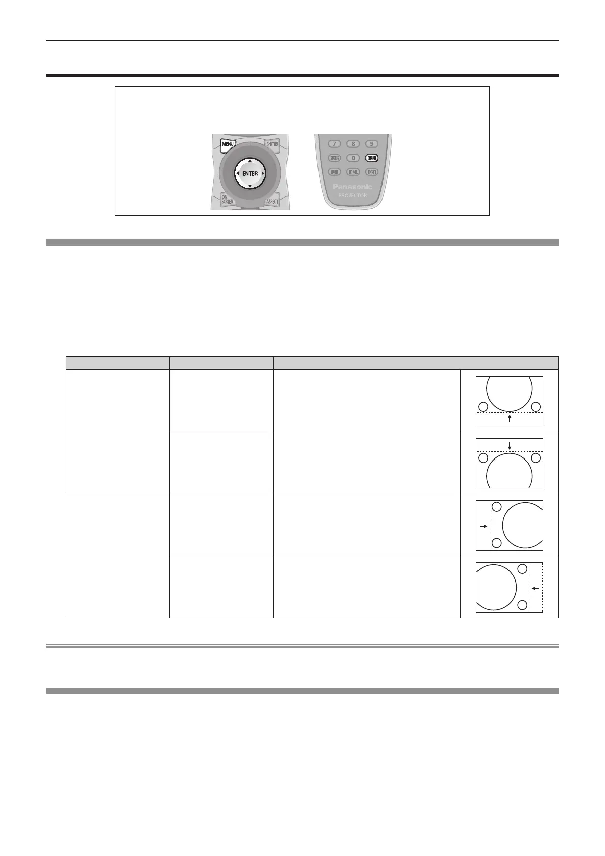 Move the image position vertically or horizontally if the image position projected on the screen is shifted even when the relative position of the