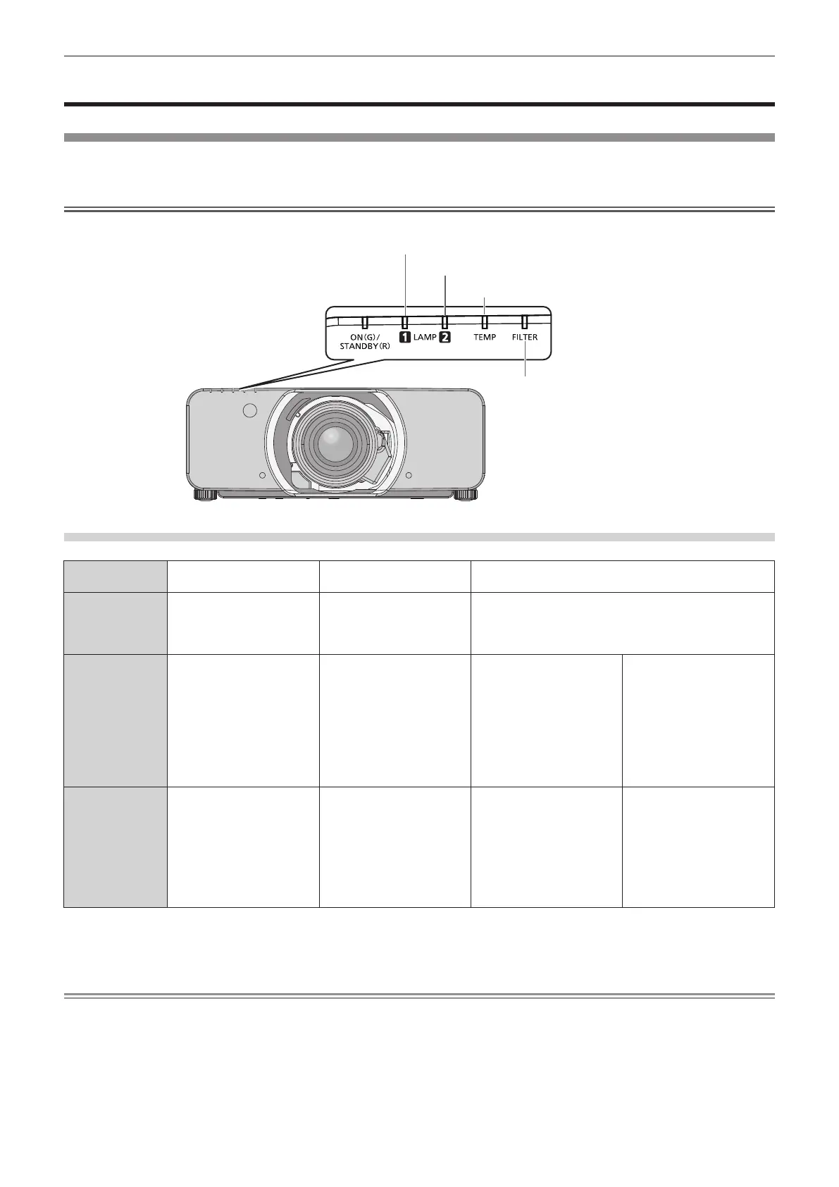If a problem should occur inside the projector, the lamp indicators <LAMP1>/<LAMP2>, the temperature indicator <TEMP>, and the lter